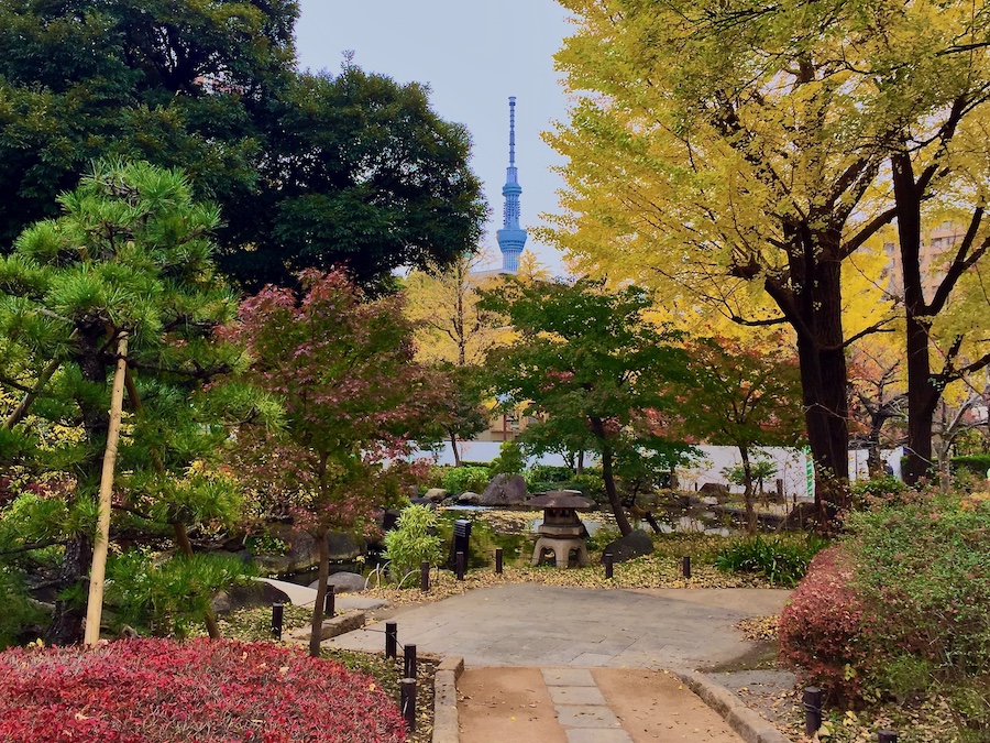 《震災時、清澄庭園や安田庭園など都内の庭園が、人命の保護に役立ったことを教訓として計画されたもの》だそうで、その設計には昭和の東京の著名な造園家のひとり・平山勝蔵さんも関与しました。現代には東京スカイツリーを借景としてのぞめるポイントも!