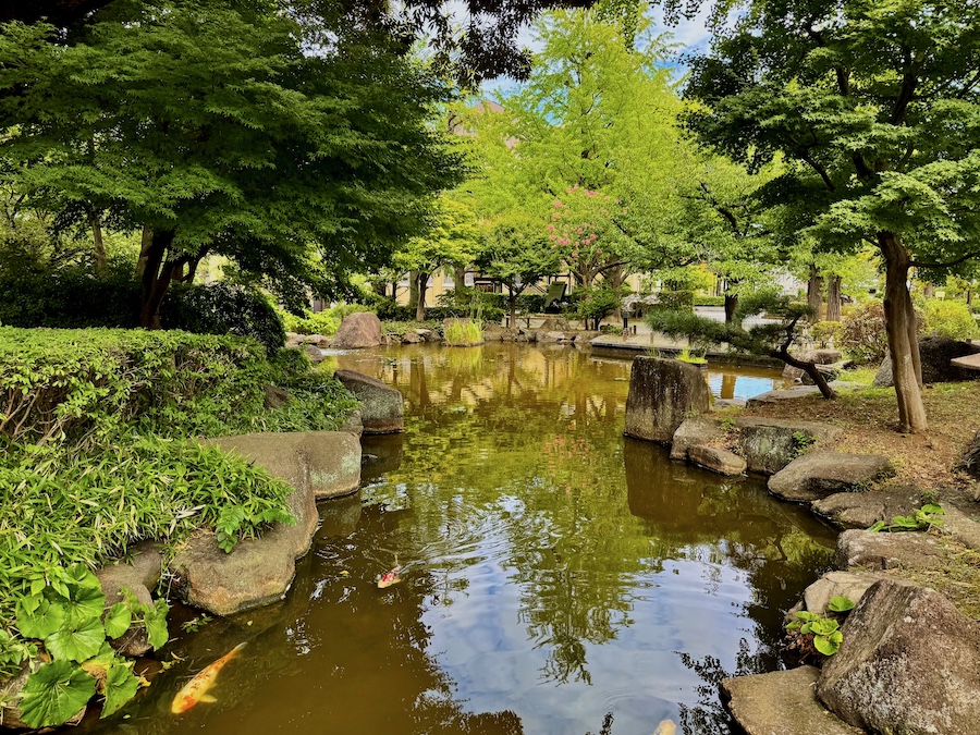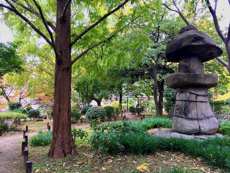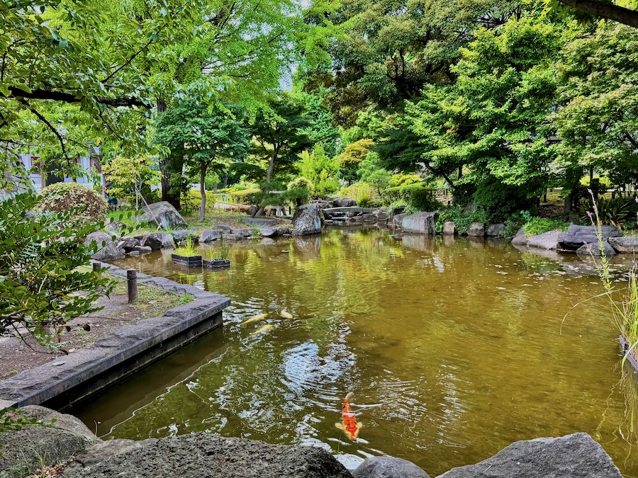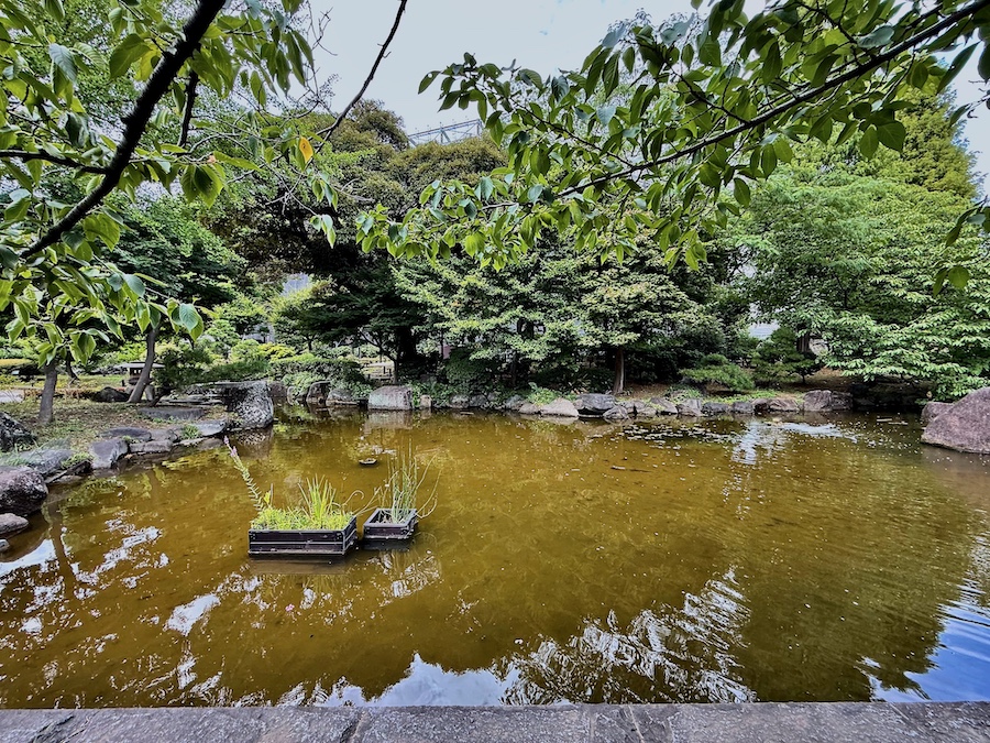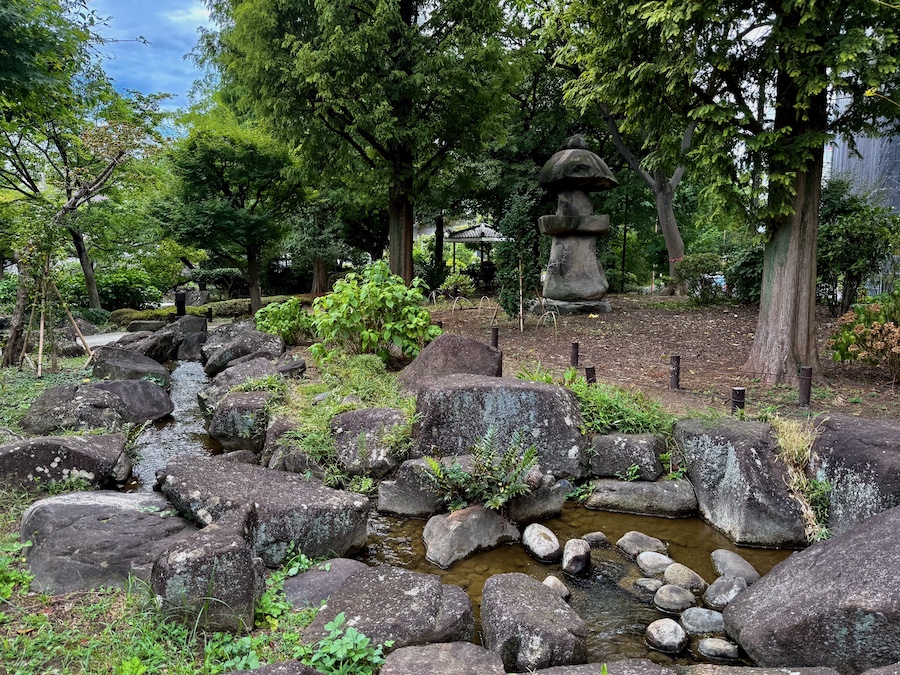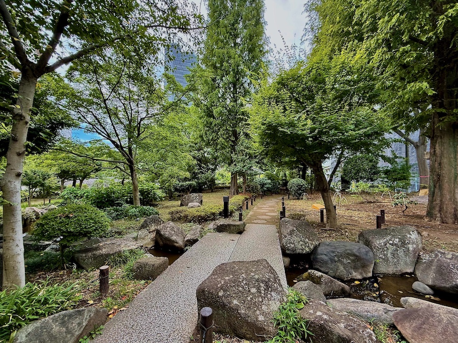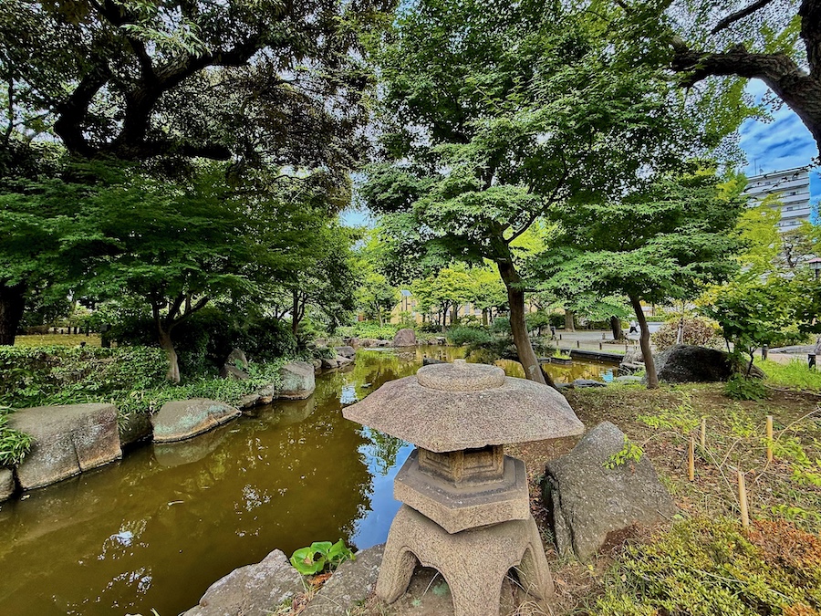 東京都指定文化財の庭園『旧安田庭園』からすぐの場所にあるもう一つの日本庭園。安田庭園と比べると庭園としてはこじんまりはしているものの(公園そのものは約20,000平方メートルと広いです)、庭園作庭には昭和の造園家・平山勝蔵も関与しているとか。