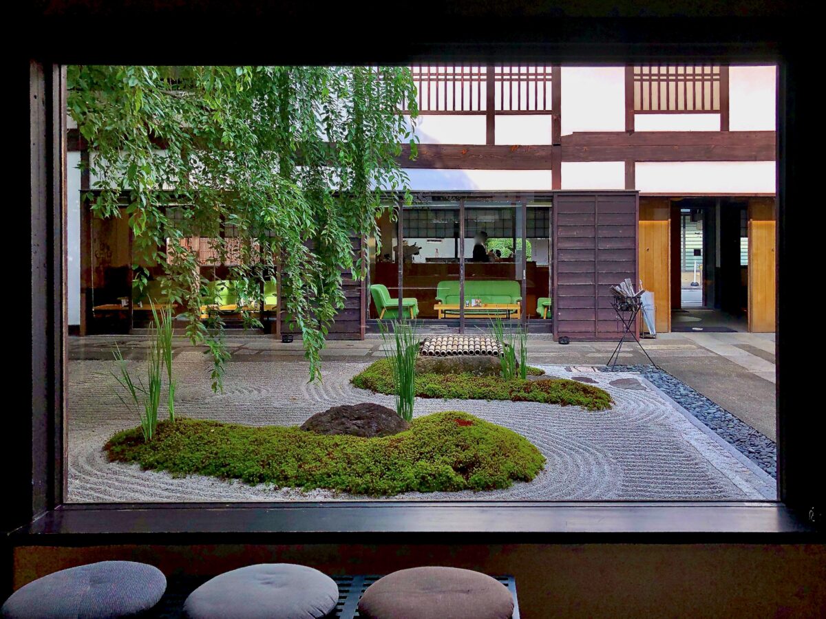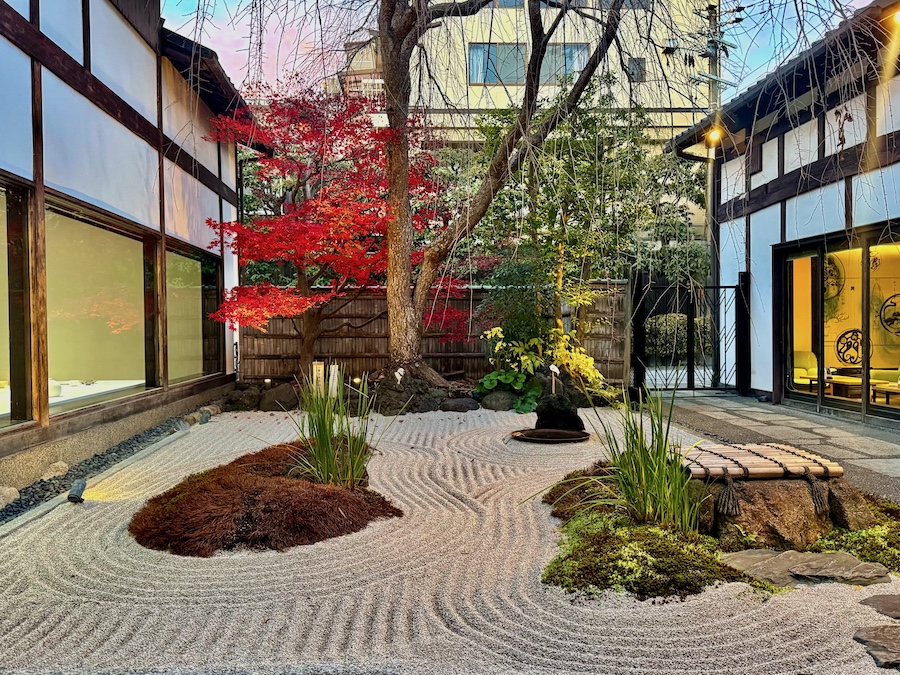 築300年の京町家をリノベーションした茶寮“Zen Cafe”やギャラリーの枯山水庭園は、佐野藤右衛門率いる“植藤”の手掛けた“天戸ノ庭”。